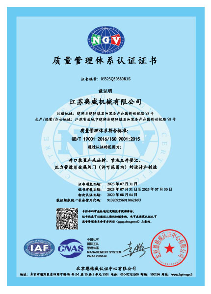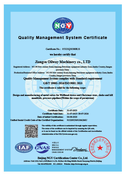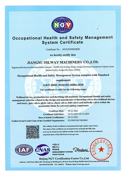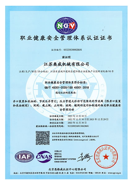 我們一直秉著質(zhì)量可靠、用戶至上的理念為客戶提供服務,公司先后取得API6A,API6D,API16A,API16C,CE,TRCU (EAC),API6FA,ISO9001,ISO14001,ISO45001等國際認證,使我們能更加規(guī)范化的按照標準及客戶要求,提供優(yōu)質(zhì)產(chǎn)品。